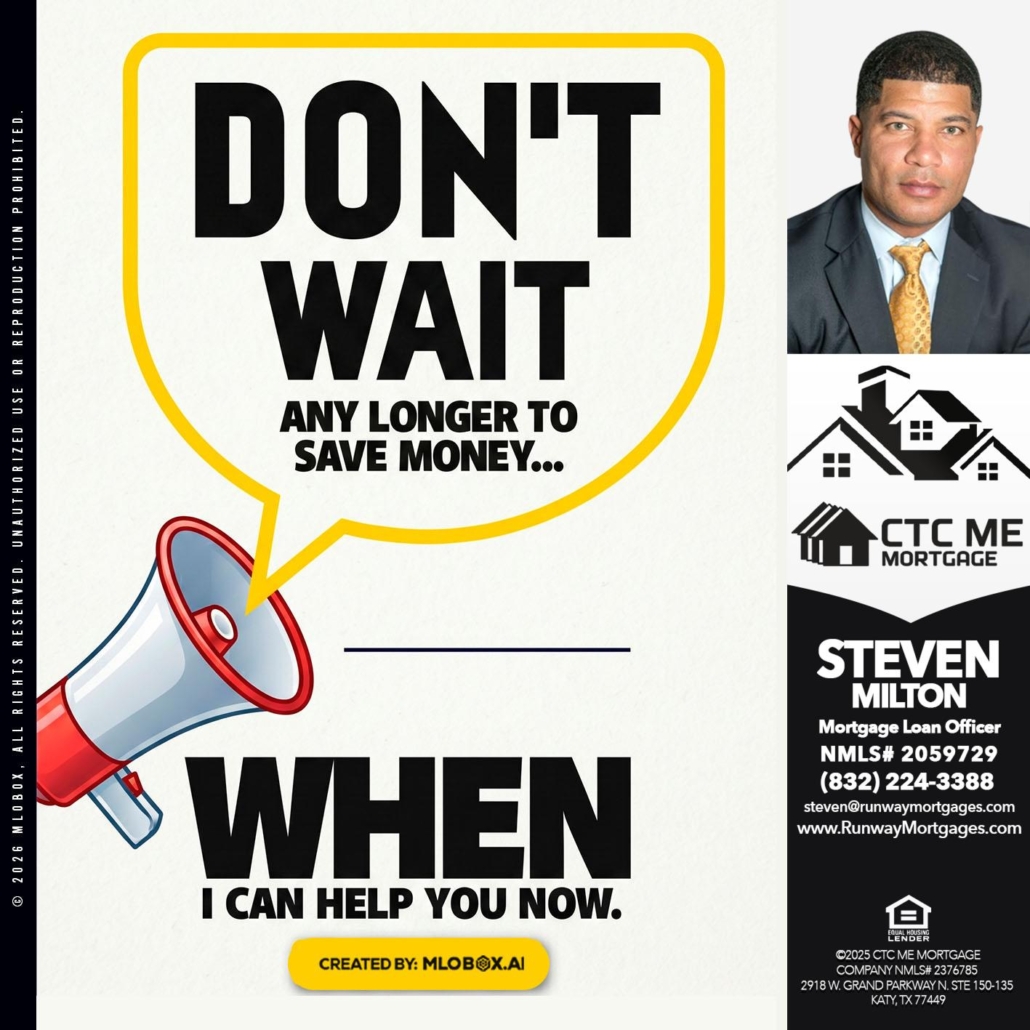 Hi, my name is Steven Milton. I’m a Loan Officer with CTC Me Mortgage, offering personalized mortgage solutions, fast customized quotes, great rates and service with integrity.